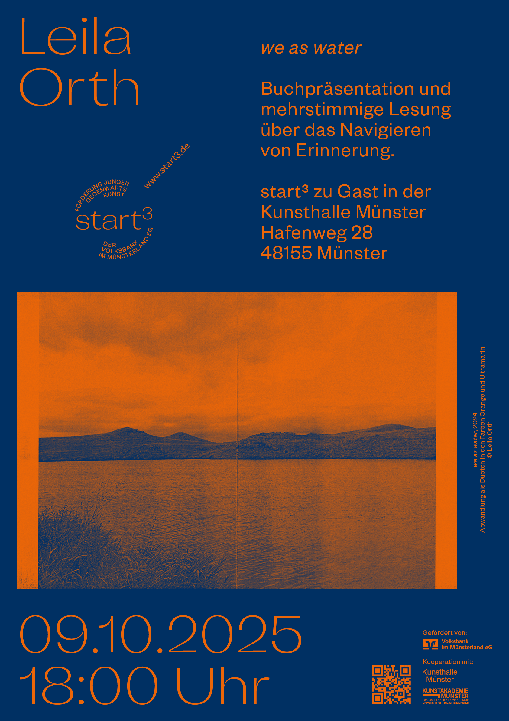 Die Buchpräsentation in der Kunsthalle Münster entsteht im Rahmen von Leila Orths start3 Stipendium und wird gefördert von der Volksbank im Münsterland eG.