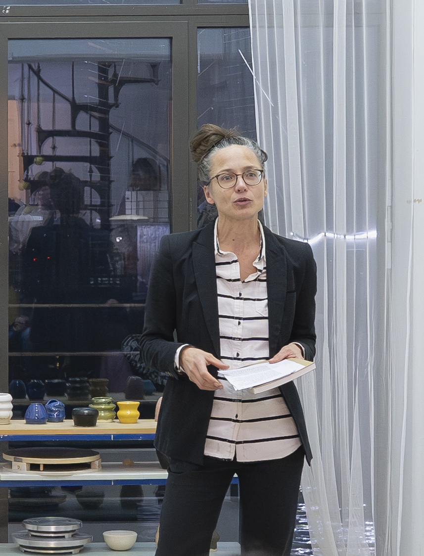Am Donnerstag, den 27. April hat Isabel Schober ihren eigenen Schaffensprozess zum Projekt gemacht. Um diesem näher zu kommen und ihn herauszufordern hat sie am Tag der Veranstaltung eine Präsentation aktueller, sich im Prozess befindender Keramiken und Zeichnungen zusammengestellt. Die Studio Arbeiten waren Ausgangspunkt für ein Gespräch mit dem Publikum und dem Neurophysiologen, Maler, Bildhauer und Autor Prof. Dr. Erwin-Josef Speckmann, bei dem Schober selber studiert hat. Speckmann, der in Büchern und Seminaren sein neurobiologischen Wissen mit seinen künstlerischen Erfahrungen verbindet, betonte unter anderem: jede Kunst entsteht zweimal, bei der Produktion und bei der Rezeption.