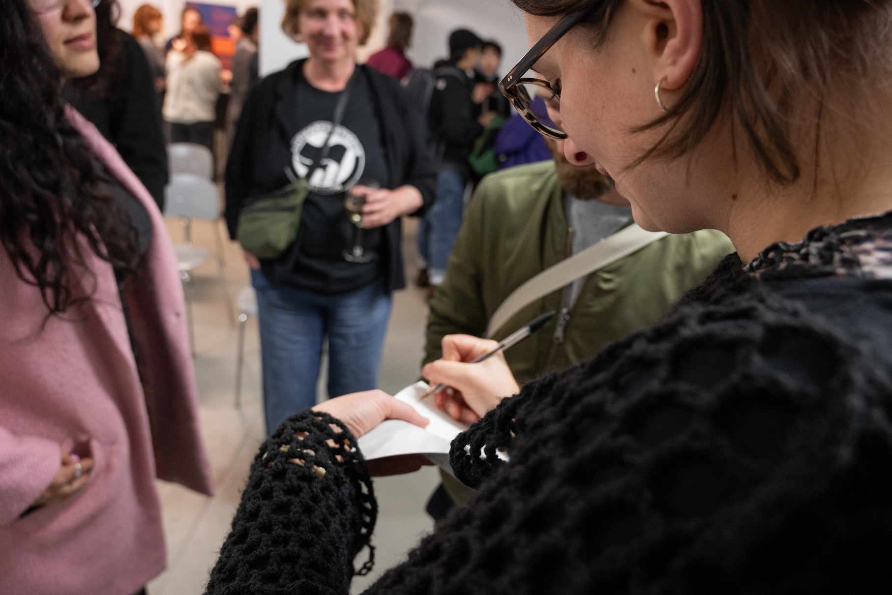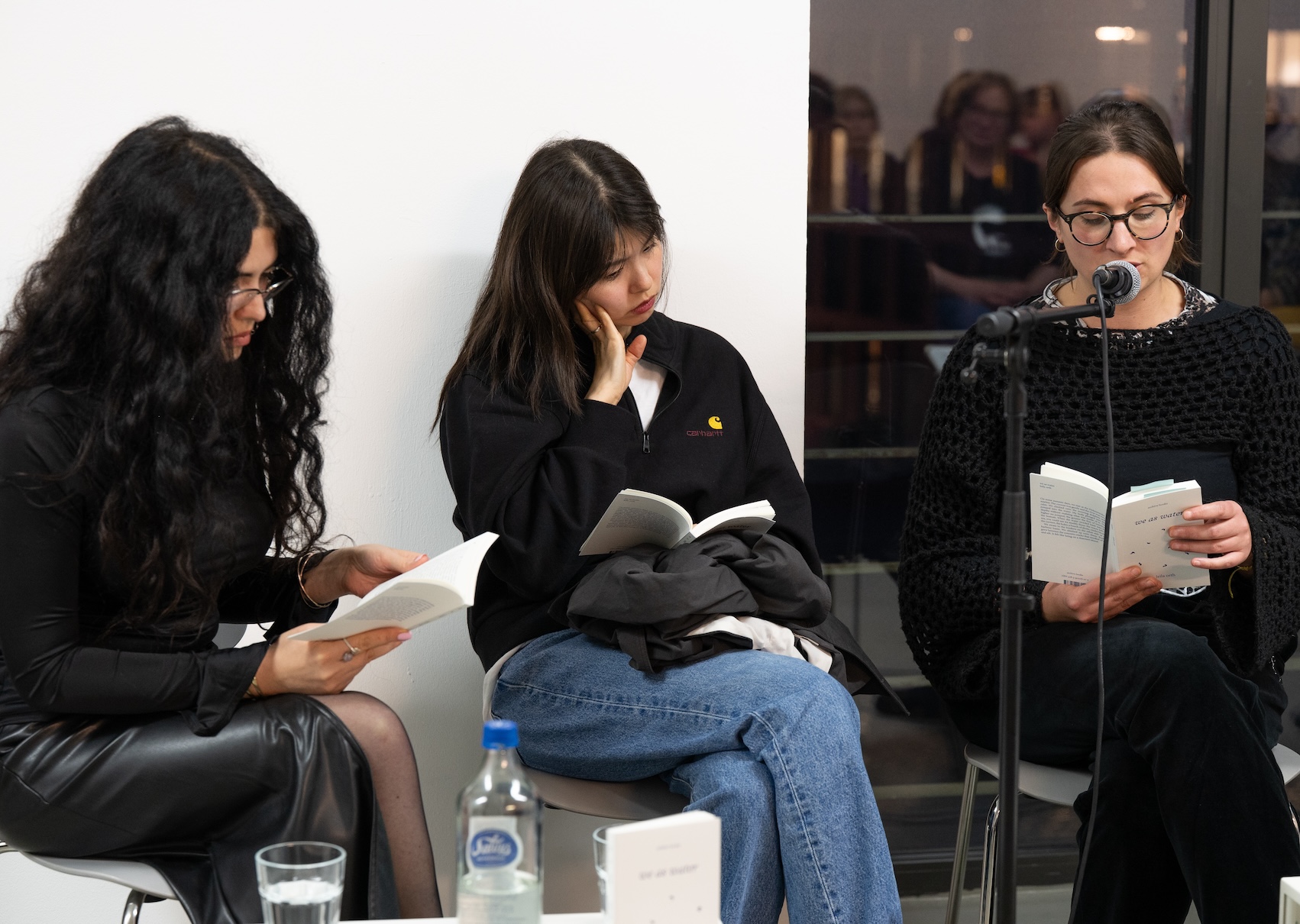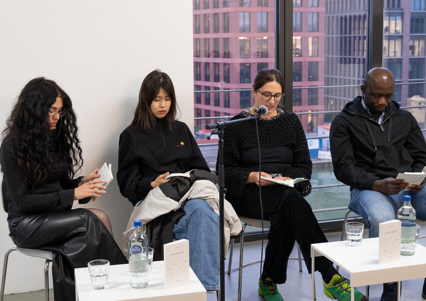 Die Buchpräsentation am 9. Oktober 2025 wurde von einer Lesung begleitet, in der Leila Orth und drei der acht Autor:innen des Buches Dessa Ganda, Jinhyun Kim und Mary Mikaelyan ihre Beiträge vortrugen. Eine Soundperformance von Dessa Ganda bildete den Abschluss der Veranstaltung, die in Kooperation mit der Kunsthalle Münster stattfand.